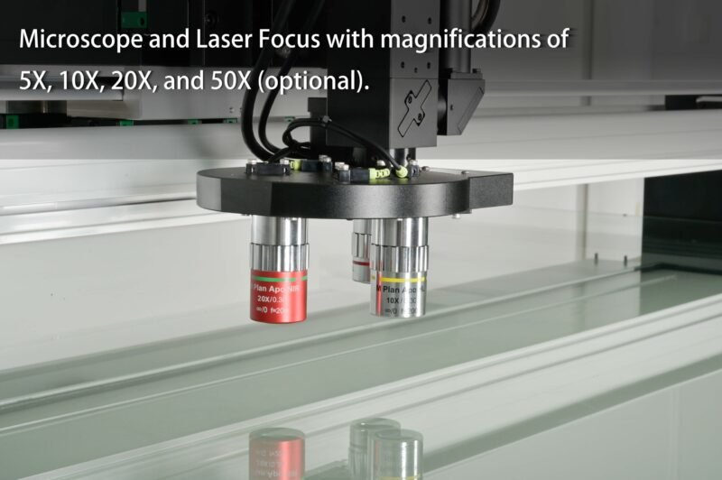 * * Microscopio controlado eléctricamente de precisión, lente conmutada mediante un clic del ratón.