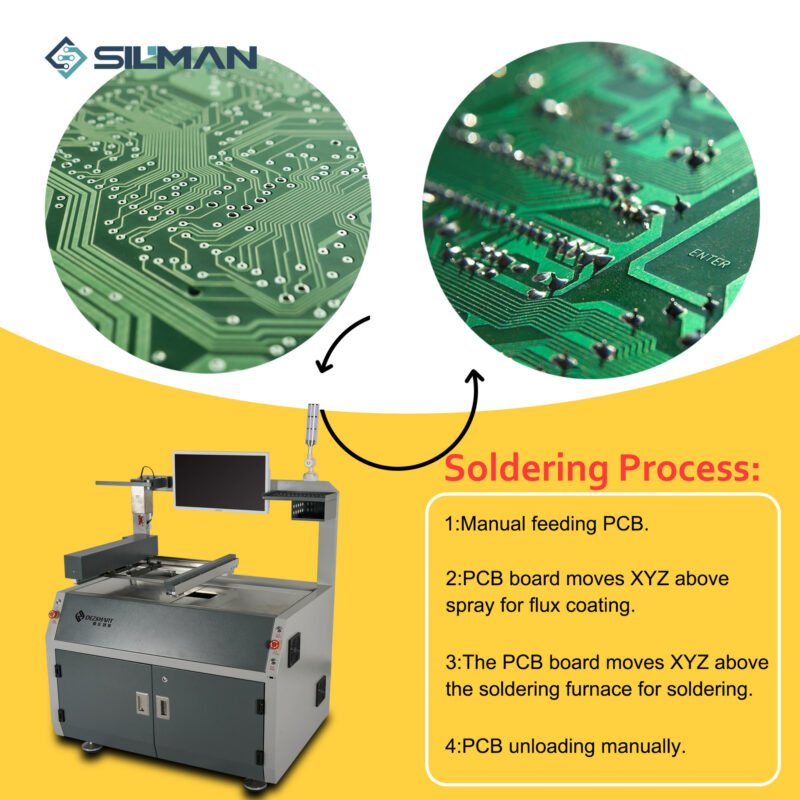 - Mouvement de la carte de circuit imprimé, pulvérisation et plate-forme de brasage fixes. Qualité de brasage élevée.