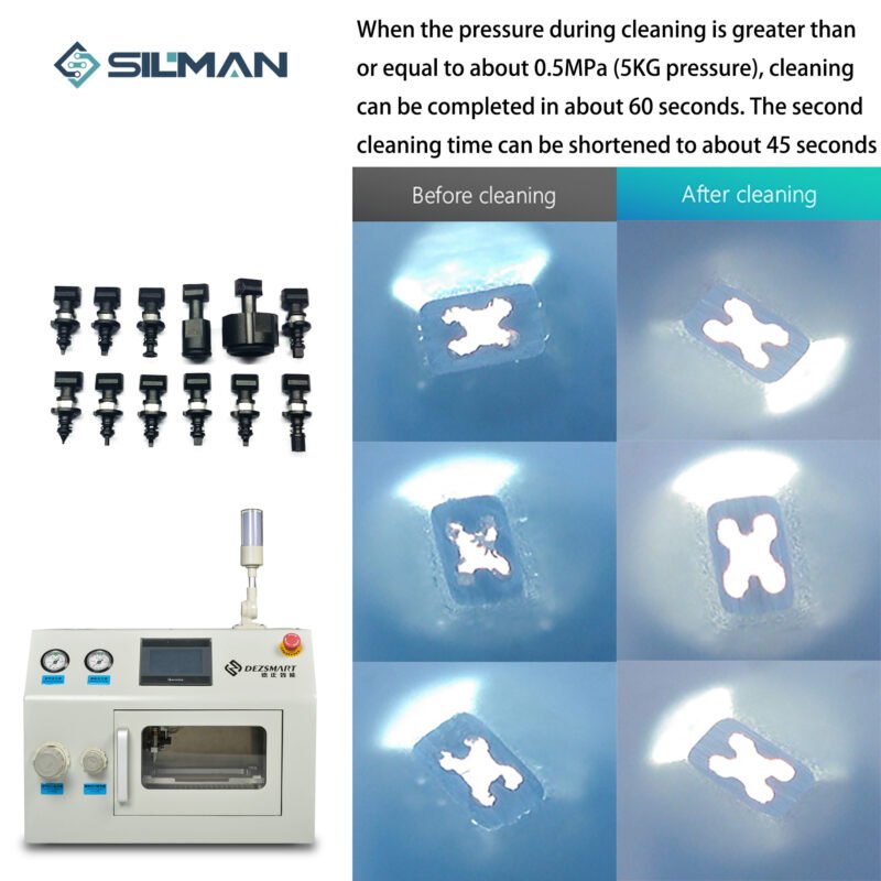 Распыляя воду для создания сверхтонкого водяного тумана и формируя мощную кинетическую энергию со сверхзвуковой скоростью (V=360 м/с), он эффективно удаляет грязь с поверхности и внутренней части форсунок. Самостоятельная очистка без повреждения форсунок. Использование этого устройства для ежедневной профилактической очистки форсунок позволяет добиться тщательной очистки безопасным способом. Оно снижает стоимость брака сопел, вызванного традиционными методами очистки, продлевает срок службы сопел и играет важную роль в обслуживании машин поверхностного монтажа, обеспечивая их работу в оптимальных условиях.